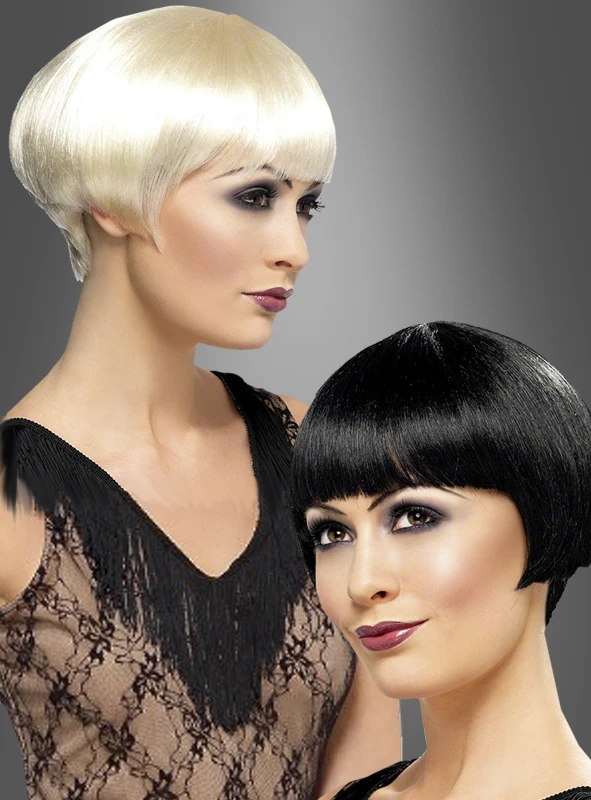 Die Kurzhaarperücke im Bob-Stil passt zu vielen verschiedenen Kostümen aus den 20er Jahren. Eine Perücke, die zu Ihrem Charlestonkostüm nicht fehlen darf. Wahlweise in blond oder schwarz.