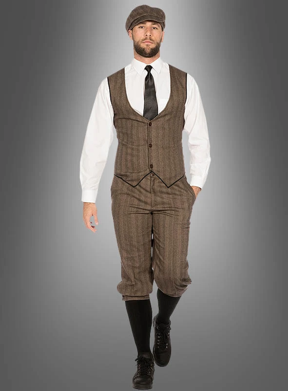 Mit Knickerbocker Kniebundhose und Schiebermütze zur Mottoparty! Die 20er Jahre Mode spiegelt sich wider im Kostüm John. Weicher Webstoff in Fischgrätmuster und TOP Qualität zeichnen dieses Herrenkostüm aus und machen es zu etwas Besonderem.