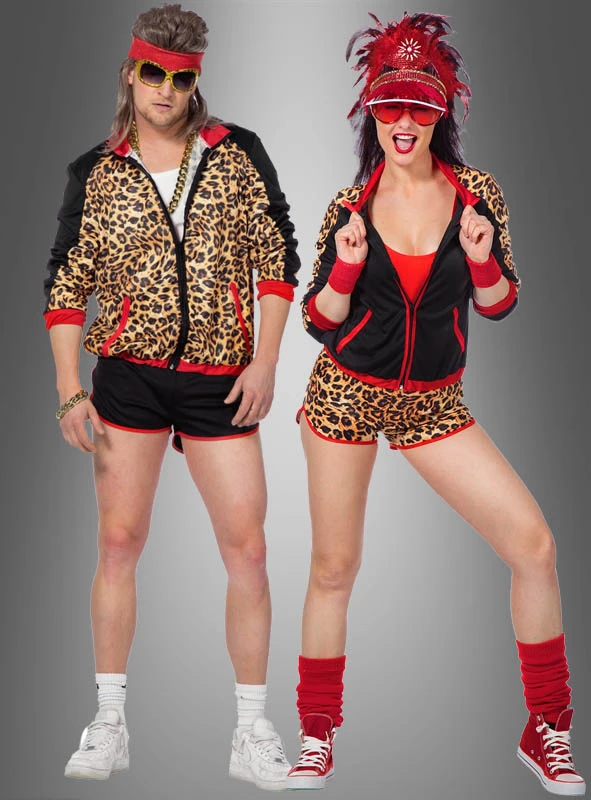 Sportlich gekleidet können Sie in der Leoparden Jacke die 80er Jahre Party rocken. In diesem Trainingsanzug mit kurzer Hose wird Ihnen beim Tanzen bestimmt nicht zu heiß. Und das Karnevalskostüm ist einfach nur toll bequem!