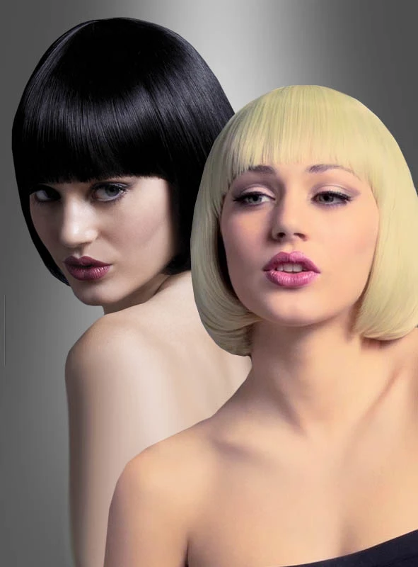 Für die 20er Jahre Party ist die schwarze Perücke mit Pagenschnitt genau das richtige Accessoire. Auch in blond ist sie zu haben.