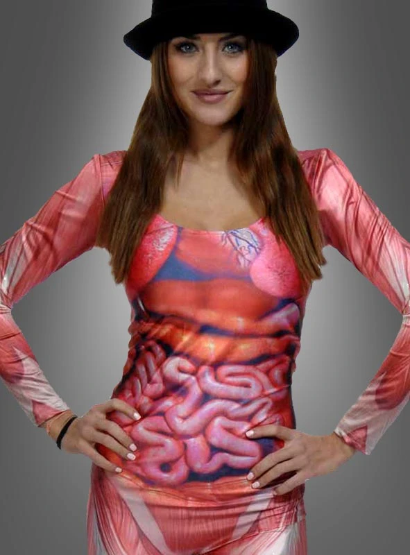 Die inneren Werte zählen! Mit diesem enganliegendem Catsuit Anzug für Damen sieht man das ganz deutlich. Muskeln und Organe liegen für jeden sichtbar offen. Ein super Spaß für Studentenpartys, Halloween und Karneval.
