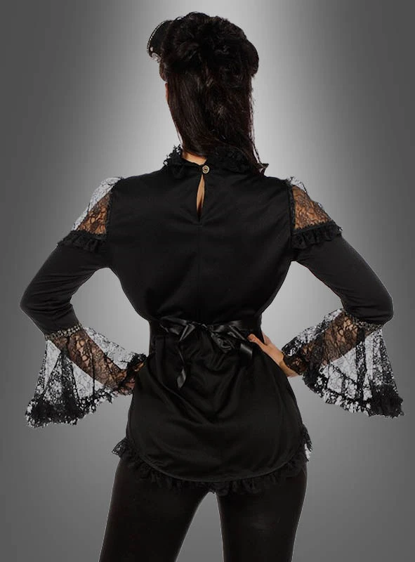 Eine elegante Bluse mit Spitze in schwarz wartet auf Ihre Vampirin oder Steampunk-Lady! Viktorianisch elegant präsentiert sich diese auffällige Bluse für Damen.