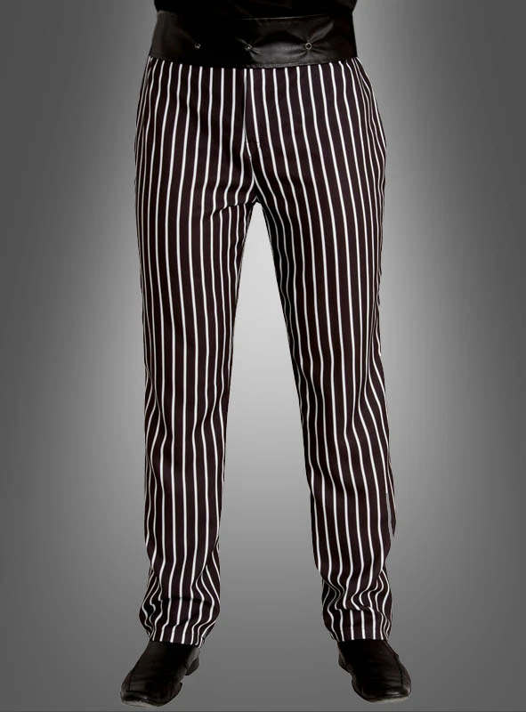 Eine schlichte gestreifte Hose in schwarz und weiß für Herren passt zu vielen verschiedenen Kostümen. Sie sind auf eine 20er Jahre Party eingeladen? Mit dem passenden Zubehör werden Sie zum Mafiosi. Auch für Black & White Partys haben wir passende Accessoires wie Krawatten, Fliegen und Hosenträger. Ideal zu Jacketts, Gehröcken und Fräcken.