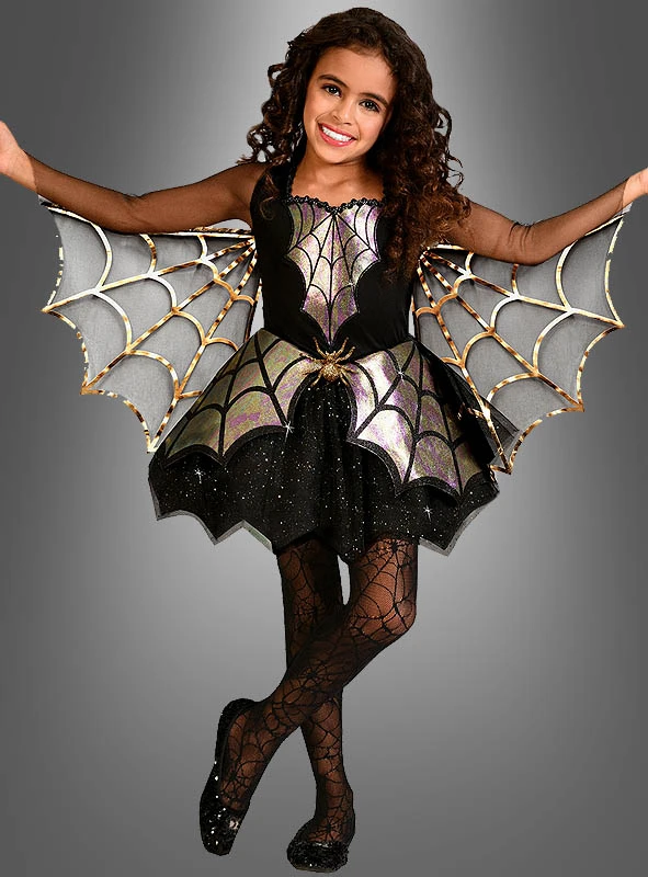 Dieses traumhafte Spinnenkostüm für Mädchen bezaubert durch viele Details und schillernde Effekte.