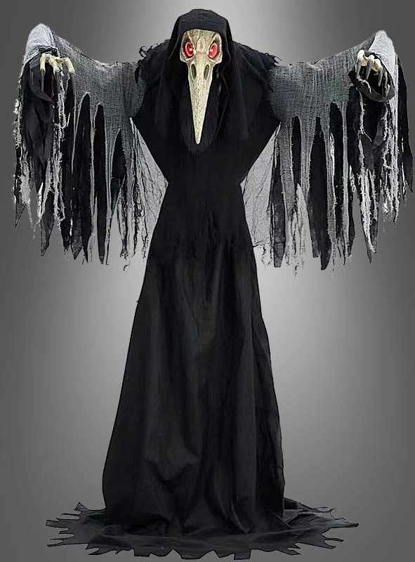 Die riesige Geister Krähe als Standfigur ist voll animiert. Die Arme bewegen sich auf und ab und der Rabenschädel bewegt sich vor und zurück. Dabei bewegt er den unteren Teil des Schnabels und spricht (auf Englisch). Dabei ertönt Krähengeschrei im Hintergrund. Die Augen leuchten dabei teuflisch rot und unheimlich. Wirklich beeindruckend!