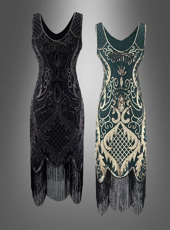 Für eine elegante Charleston Party sind unsere edlen 20er Jahre Kleider mit Pailletten der Hit! Im Paillettenkleid Amber werden Sie stahlen wie eine Diva und alle anderen in den Schatten stellen.