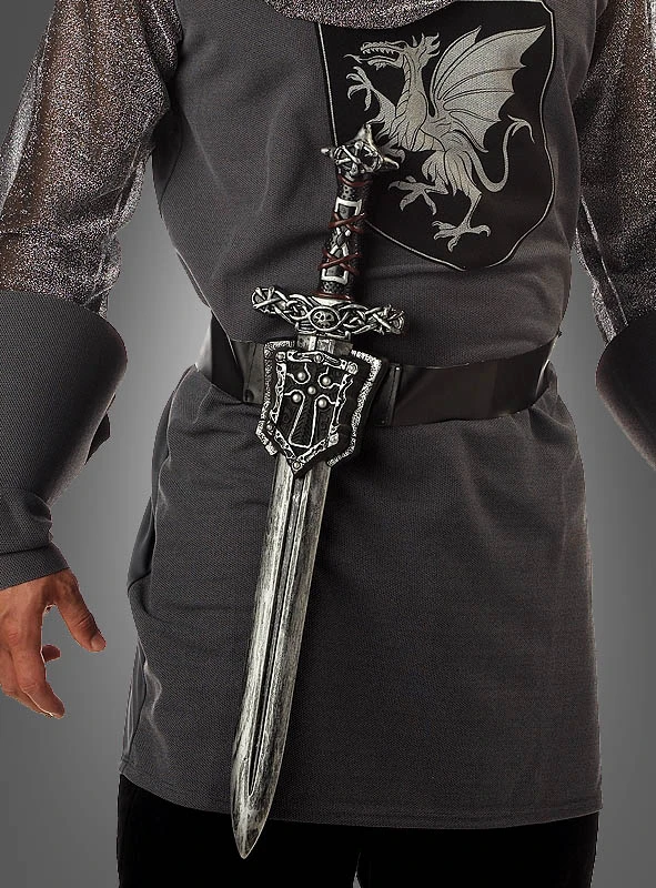 Was wäre ein Kreuzritter ohne sein Schwert? Toll gestaltetes Ritterschwert mit Gürtel. Das Schwert und die Scheide sind aus Kunststoff mit vielen Details gefertigt. Am Gürtel aus Kunstleder ist eine Waffenscheide befestigt, in die man das 60 cm lange Schwert nach der Schlacht hineinstecken kann. So hat man die Hände frei für schöne Burgfräulein und Prinzessinnen. Ein tolles Kostümset für Kinder und Erwachsene zum Mittelalterkostüm an Karneval.