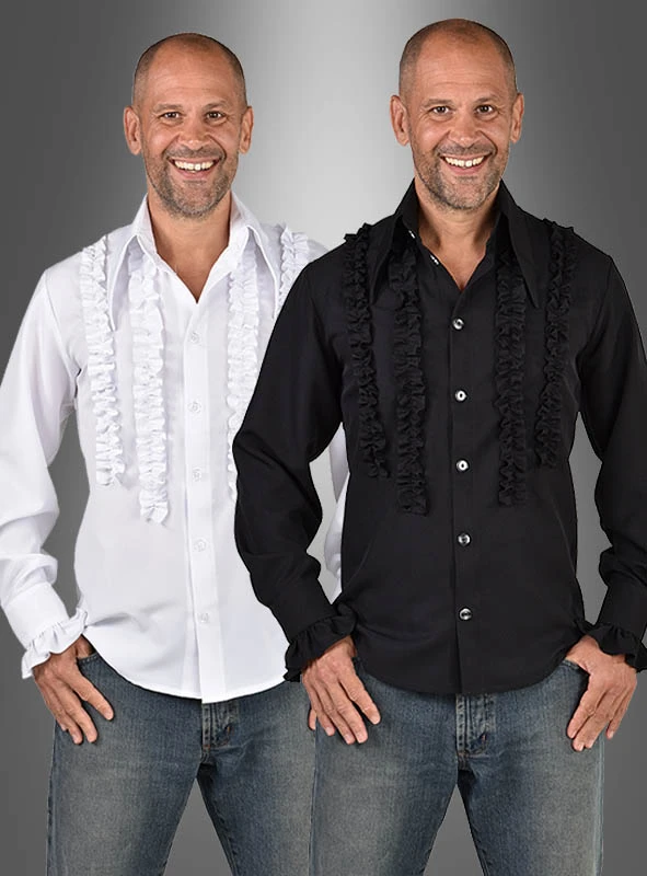 In diesem luftig leichtem 70er Rüschenhemd kommen Sie auf der Tanzfläche oder beim nächsten Dieter-Thomas Kuhn Konzert nicht mehr so leicht ins Schwitzen. Das perfekte Outfit für Karneval und Mottoparty.