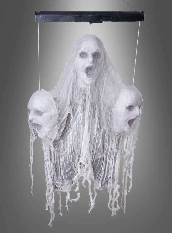Schwebende Geister Köpfe animiert mit Sound, Bewegung und Licht sind ein Blickfang auf jeder gruseligen Party. Egal ob Sie für ein Geisterschloss, ein Haunted House oder für eine Halloween Party dekorieren. Diese schaurigen Gesichter sind einfach toll!