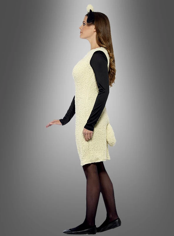 Das Schafkostüm in Top-Qualität ist aus einem kuschelweichem Plüsch Fell gefertigt. Das Kleid ist in etwa knielang und im Rücken mit einem langen Reißverschluss ausgestattet. Die angenähten Ärmel sind aus schwarzem, leicht dehnbarem Stoff. Natürlich ist hinten auch ein lustiges Schaf-Schwänzchen angebracht. Ebenfalls im Lieferumfang enthalten ist ein schwarzer Haarreif mit Plüsch in der Mitte und den zwei schwarzen Schafohren. Endlich gibt es ein Tierkostüm für Damen, als Kleid, nicht als Overall. Ein tierisch schönes Damenkleid.
