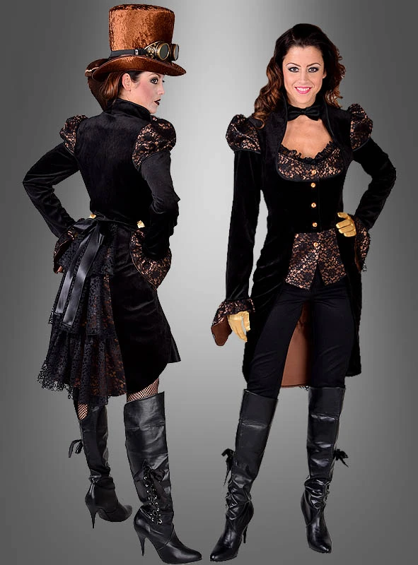 Im Lieferumfang enthalten ist die Steampunk Jacke. Alle weiteren Accessoires wie Zylinder, Steampunk Brille, Schmuck, Rock, Strümpfe, Leggings usw. können separat dazu bestellt werden. Schuhe und Handschuhe sind ebenfalls nicht im Lieferumfang enthalten.
