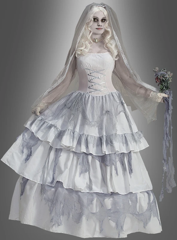 Damit die Geisterbraut noch authentischer aussieht, wird verschiedenes Zubehör empfohlen, welches hier im Online-Shop ebenfalls erhältlich ist. Neben der passenden Schminke empfehlen sich farbige Kontaktlinsen, lange Handschuhe und natürlich ein Blumenbouquet.