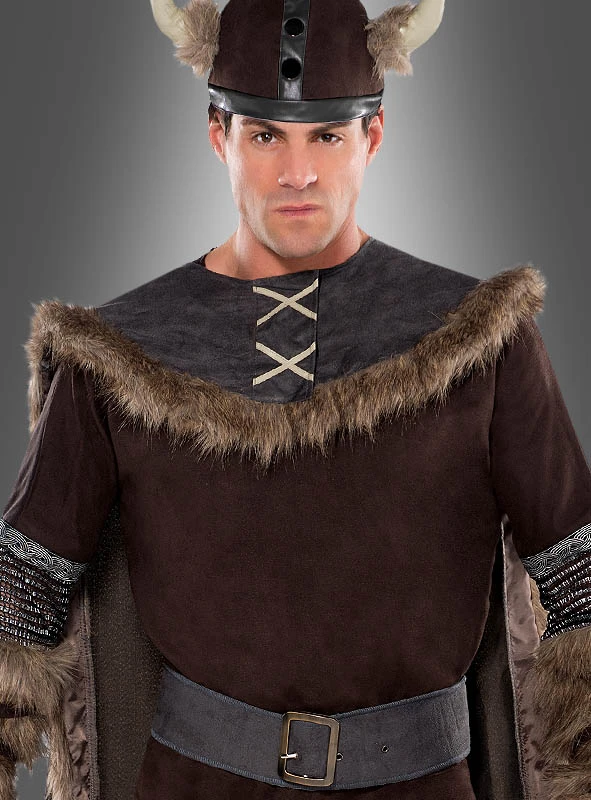Die Verkleidung ist edel verarbeitet mit hochwertigem Plüschfell an Kragen, Armen und Beinen und sehr viel Liebe zum Detail. Die tolle Velouroptik der Tunika verleiht dem Kostüm das gewisse Etwas. An den Armen befindet sich ein sehr schön verarbeitetes Kettenhemdimitat aus Stoff. Mit dabei ist auch der Stoffgürtel mit Metallschnalle. Der Helm ist aus Stoff und hat einen eher großen Kopfumfang. Sollte dieser zu groß sein, können Sie diesen seitlich etwas einnähen und somit genau anpassen.
